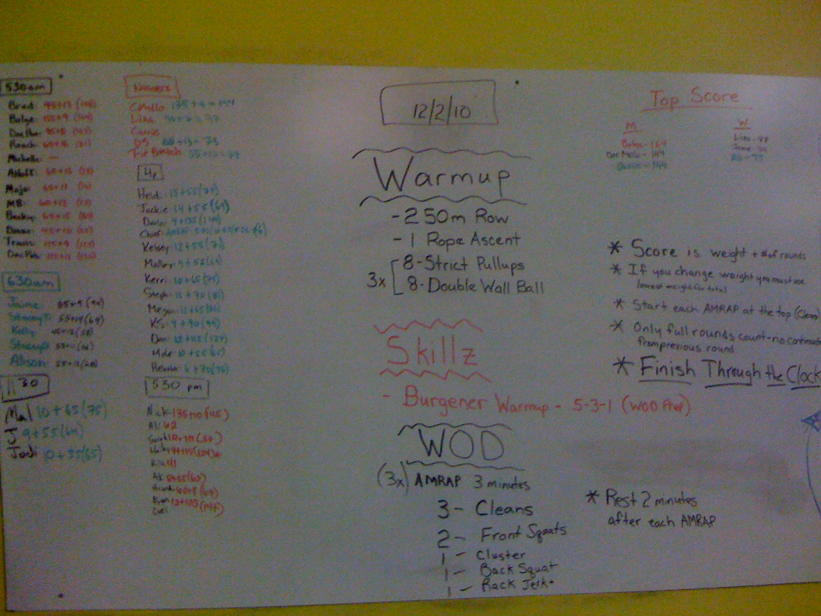 “My favorite thing to do before every workout is a 1000m nice and easy row and then 50 GHD sit-ups/50 hip extensions. I break it up anyway I want. I am not in a hurry to get it done. It’s a great little accessory warm-up up to strengthen the hips, abs, and back. I rarely get sore from GHD workouts anymore. Give it a try! Or…. try rolling out a bit…or…practicing some gymnastics moves….or….going for a jog around the block with a friend…..or……working on your shoulder flexibility……etc, etc, etc. You get the idea. Of course, you can always just come in and chill out until your session starts. Nothing wrong with that either! It’s your gym. Use it as you see fit. Whatever you do…. Don’t download Angry Birds onto your cellphone. You’ll never get anything done if you do”